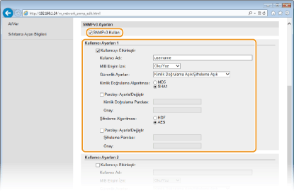 SNMPv3 ayarlarını belirtin.