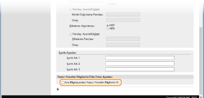 Atanmış Topluluk, önayarlı bir topluluk olup iW Management Console gibi Canon yazılımlarını kullanan Yöneticiler için özel olarak tasarlanmıştır. Atanmış Topluluk kullanmak için onay kutusunu seçin. Atanmış Topluluk kullanmanız gerekmiyorsa, onay kutusunu temizleyin.