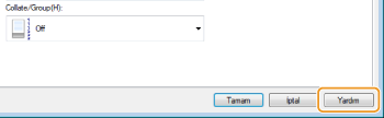 Hem PCL6 yazıcı sürücüsünü hem UFR II yazıcı sürücüsünü kullanabilirsiniz. Mevcut yazdırma seçenekleri yazıcı sürücüsüne bağlı olarak değişir. Daha fazla bilgi için her bir yazıcı sürücüsünün ekranında bulunan [Help] (Yardım) ögesine tıklayın.