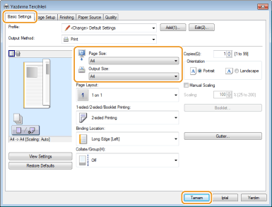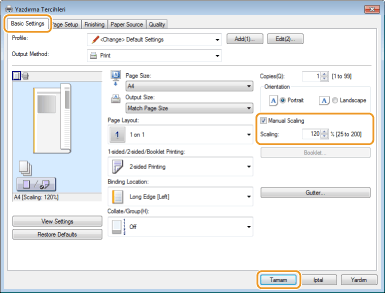 Bazı uygulamalardaki büyütme/küçültme ayarları, yazıcı sürücüsündeki ayarlardan önceliklidir.