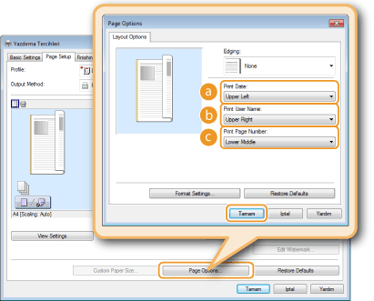 Tarihlerin ve Sayfa Numaralarının Yazdırma Biçimini Değiştirme