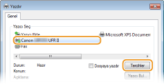 Yazıcınızı seçin ve [Tercihler] veya [Özellikler] öğesini tıklatın.