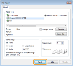 Yazdırma ayarlarını belirtin ve [OK] (Tamam) düğmesini tıklatın.