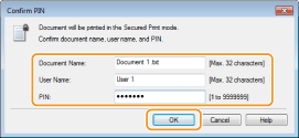 [Document Name] (Belge Adı), [User Name] (Kullanıcı Adı) ve [PIN] girişi yapın ve [OK öğesini tıklatın.