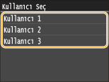 İki veya daha fazla kullanıcının güvenli belgesi bellekte tutuluyorsa, <Dosya Seç> ekranından önce <Kullanıcı Seç> ekranı görüntülenir. Kullanıcı adınızı seçin.