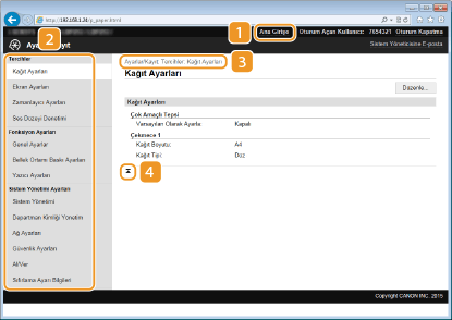 Yalnızca Sistem Yöneticisi Modunda oturum açtığınızda [Sistem Yönetimi Ayarları] alanını belirleyebilirsiniz.