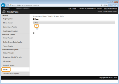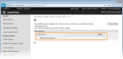Makinenizden dışa aktarılan verileri yükleyin (içe aktarın). Makinenizle aynı model ise, başka bir makineden ayarları da içe aktarabilirsiniz.