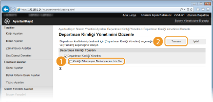 Bir bilgisayardan yaptığınız her seferde [Departman Kimliğini/PIN Onayla] açılır ekranını görüntülemek için onay kutusunu işaretleyin.