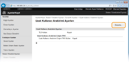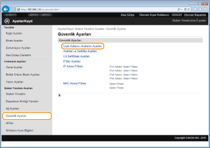 [Güvenlik Ayarları]  [Uzak Kullanıcı Arabirimi Ayarları] öğesini tıklatın.