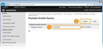 Önceden paylaşılan anahtar için en fazla 24 alfasayısal karakter girin ve [Tamam] öğesini tıklatın.