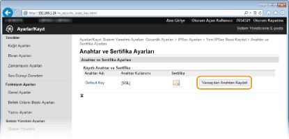 Kullanmak istediğiniz bir anahtar çiftinin sağındaki [Varsayılan Anahtarı Kaydet] öğesini tıklatın.