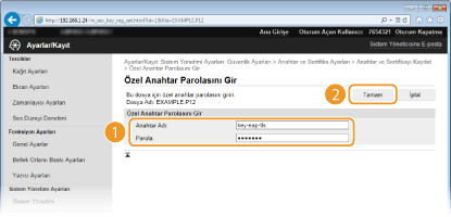 Anahtar çiftinin adını ve parolayı girin ve ardından [Tamam] öğesini tıklatın.