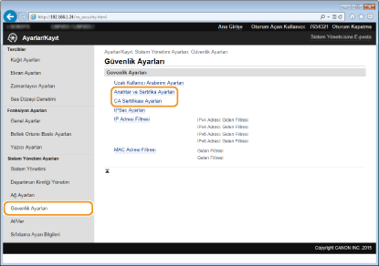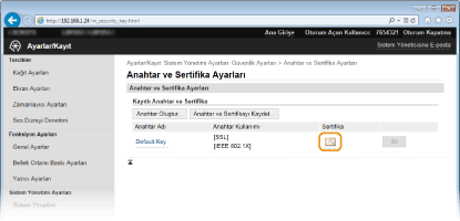 [Anahtar ve Sertifika Ayarları] veya [CA Sertifikası Ayarları] öğesini tıklatın.