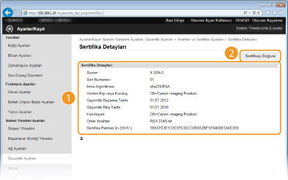Sertifikanın ayrıntılarını kontrol edin ve [Sertifikayı Doğrula] öğesini tıklatın.