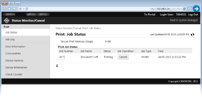 تسمح لك واجهة المستخدم البعيدة بإدارة الجهاز عن بعد من الكمبيوتر في مكتبك. يمكنك التحقق من الكميات المتبقية من الورق وخرطوشة الحبر والتحقق من حالة مهام الطباعة الحالية لتقرير ما إذا كان يلزم وقف مهام الطباعة مؤقتًا لطباعة مستندات عاجلة أو تحريك المستندات في ترتيب أعلى ضمن المهام المنتظرة الطباعة. يمكنك توفير الوقت والمتاعب من خلال القضاء على التنقل بين المكتب والطابعة.