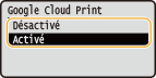 <Activer Google Cloud Print>.