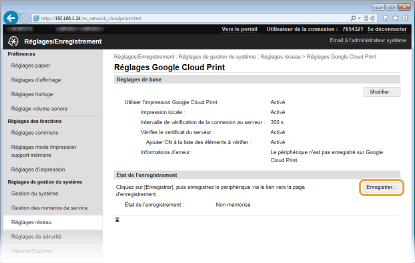 Enregistrement de l'appareil auprès de Google Cloud Print