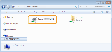 Les imprimantes partagées s'affichent.