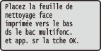 Chargez la feuille de nettoyage dans le bac multifonctions avec la face imprimée vers le bas.