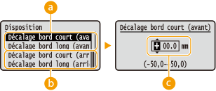 <Décalage bord court (avant)>/<Décalage bord long (avant)>