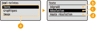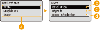 Lorsque vous réglez cette option sur l'un de <Mode 1> sur <Mode 3>, <Mode Impression spéciale A> est automatiquement réglé sur <Désactivé>. Mode Impression spéciale A
