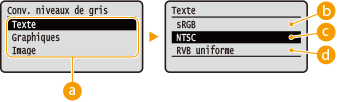Cette section décrit les paramètres permettant de convertir des données de couleur en données de niveaux de gris.