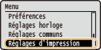 Priorité des réglagesSi vous définissez un paramètre d'impression depuis le panneau de commande de l'appareil et depuis le pilote d'imprimante, c'est ce dernier qui prévaut. Le paramètre défini depuis le panneau de commande devient opérationnel dans certains cas bien précis, par exemple si vous réalisez des impressions sous UNIX ou sous un autre système d'exploitation pour lequel les pilotes de cet appareil ne sont pas disponibles.