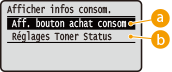 <Afficher infos consommables (IU distante/Toner Status)>