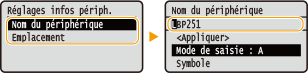 Saisissez <Nom du périphérique> ou <Emplacement> (Saisie du texte)