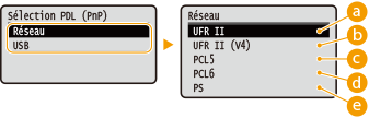 Sélectionnez <Réseau> ou <USB>