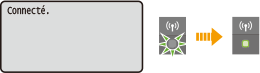 Lorsque la configuration est terminée, l'écran ci-dessous s'affiche ; au bout de 2 secondes environ, le témoin Wi-Fi s'allume.