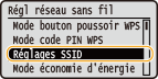 Sélectionnez <Réglages réseau sans fil> et appuyez sur