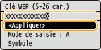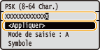 Saisissez la clé réseau au moyen des touches numériques, sélectionnez <Appliquer>, puis appuyez sur