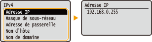 L'adresse IP n'est pas correctement configurée si "0.0.0.0" s'affiche.