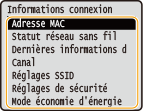 <Infos. Connex.> puis sélectionnez le réglage à afficher.