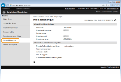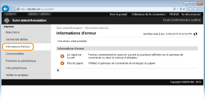 Lorsque [Accéder au site d'achat] n'est pas affichéSur le panneau de commande, configurez <Afficher le bouton d'achat de consommables (IU distante)> sur <Activé>.