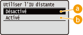 L'interface utilisateur distante est particulièrement pratique dans la mesure où elle permet de spécifier les réglages de l'appareil à partir d'un navigateur Web sur un ordinateur. Pour tirer parti de l'interface utilisateur distante, il est nécessaire de connecter l'appareil à un ordinateur via le réseau. S'il est relié à l'ordinateur via une connexion USB ou si vous n'avez pas besoin de faire appel à l'interface utilisateur distante, vous pouvez la désactiver pour éviter qu'une tierce partie mal intentionnée prenne le contrôle à distance de votre appareil via le réseau.