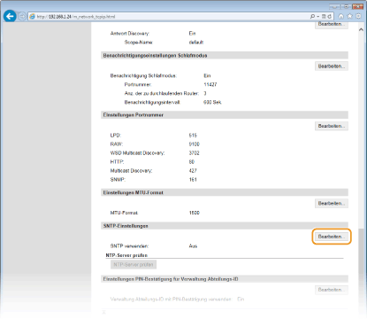 Testen der Kommunikation mit dem NTP-/SNTP-ServerSie können den Status der Kommunikation mit dem gespeicherten Server anzeigen, indem Sie auf [Einstellungen/Registrierung]