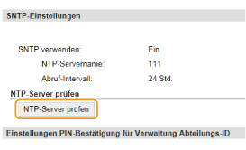 [Netzwerkeinstellungen] [Einstellungen TCP/IP] klicken und dann für das angezeigte Element [SNTP-Einstellungen] auf [NTP-Server prüfen] klicken. Wenn die Verbindung ordnungsgemäß hergestellt wurde, wird das unten abgebildete Ergebnis angezeigt. Beachten Sie, dass die Systemuhr mit dieser Funktion nicht eingestellt wird.![]() |
