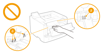 ) im Geräteinneren. Andernfalls kann es zu Schäden am Gerät kommen.![]() Während des Druckvorgangs dürfen Sie das Gerät nicht ausschalten, die Abdeckungen nicht öffnen bzw. schließen und kein Papier einlegen oder herausnehmen, da es sonst zu einem Papierstau kommen kann.