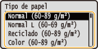 Cuando se selecciona el tamaño de papel para el casete de papel