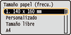 Seleccione el tamaño registrado que desee eliminar, y pulse