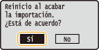 Se iniciará la importación. El equipo se reiniciará automáticamente una vez finalizada la importación.