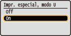 Si la configuración de este elemento no soluciona el problema, establezca <Impresión especial, modo D> en <On>. Impresión especial, modo D