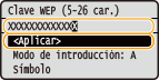 Introduzca la clave de red utilizando las teclas numéricas, seleccione <Aplicar> y pulse