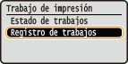 Seleccione <Registro de trabajos de impresión>, y pulse