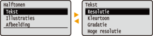 om omhoog en omlaag te bladeren. De tekst- en achtergrondkleuren van een item worden omgekeerd wanneer u deze toetsen selecteert.