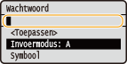 om waarden in te voeren. Als een pictogram zoals hieronder in de linkerbovenhoek van het scherm wordt weergegeven, kunt u waarden rechtstreeks met de numerieke toetsen invoeren. Tekst invoeren