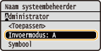 of selecteer <Symbool> en druk op als het type ingevoerde tekst <A> of <a> is, om symbolen op het scherm weer te geven die u kunt invoeren. Selecteer het symbool dat u wilt invoeren met behulp van / / / en druk dan op . |