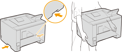 Ga aan de voorzijde van het apparaat staan, pak het vast bij de handgrepen en til het op. Als u de optionele papiertoevoer hebt geplaatst, laat u de optionele lade op de grond liggen en verplaatst u deze afzonderlijk nadat u het apparaat hebt verplaatst.